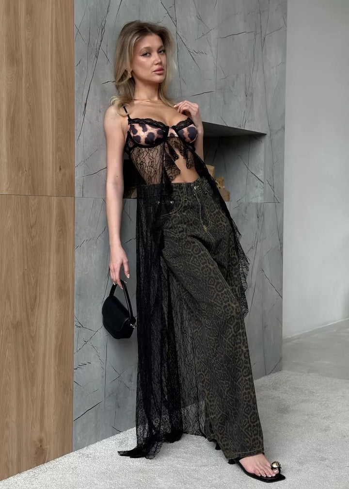 Introducing our Sheer Layered Top with Adjustable Straps, a versatile piece that combines elegance with an edgy twist. This long top is designed to stand out, making it perfect for layering or wearing on its own.