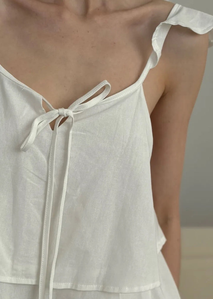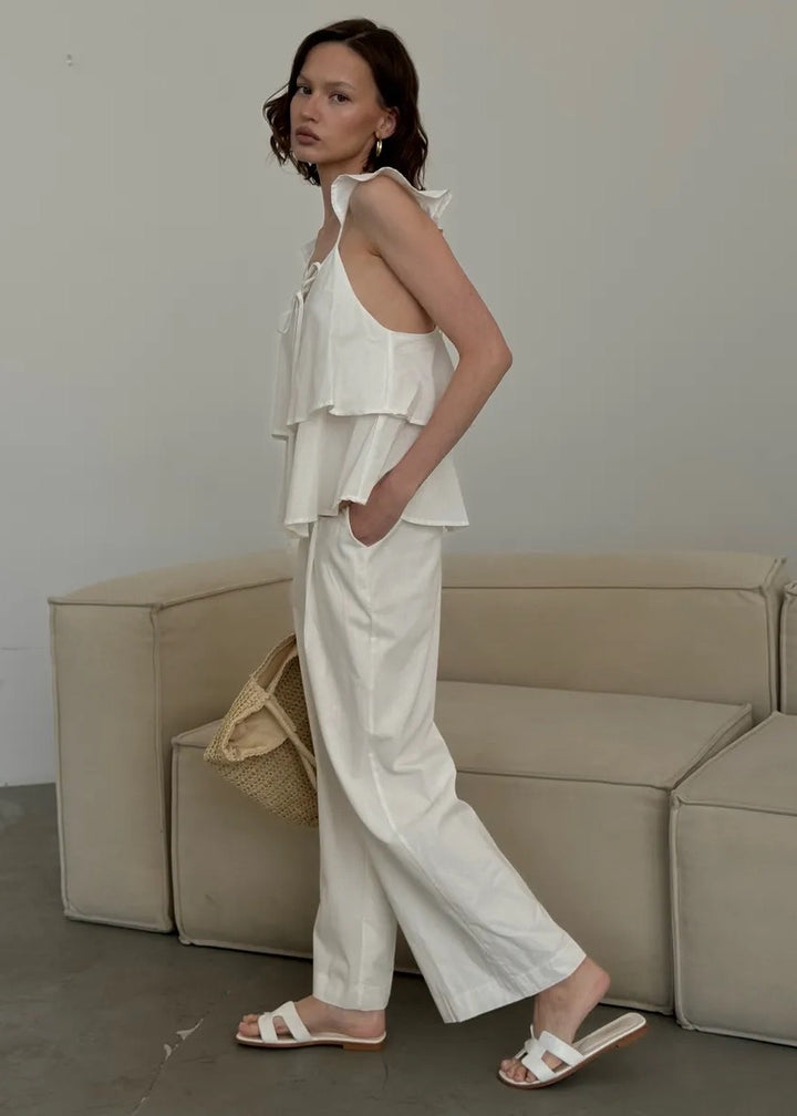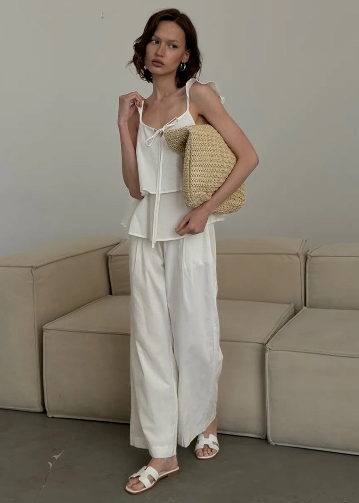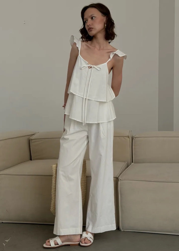 Tiered Top & Wide-Leg Trousers Cotton Set