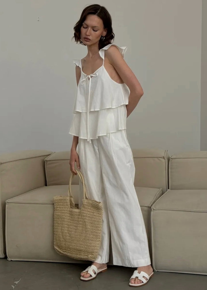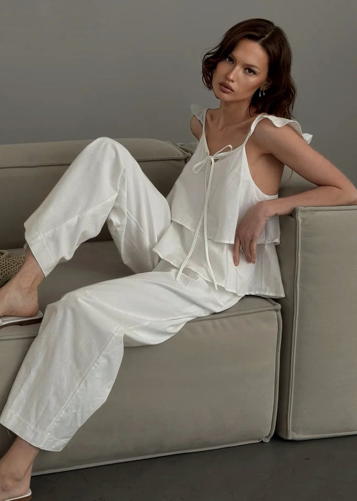- Wide-Leg Trousers: Designed for a loose, airy feel, these trousers are perfect for warm weather and casual outings.