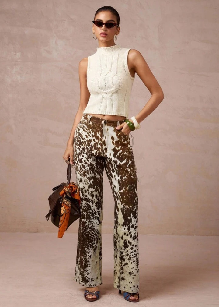 Pair with high-waisted jeans or a maxi skirt for a casual yet sophisticated look. For a trendy outfit, layer it under an open cardigan or a blazer. Accessorize with statement earrings or a chunky bracelet to complement the knit texture.