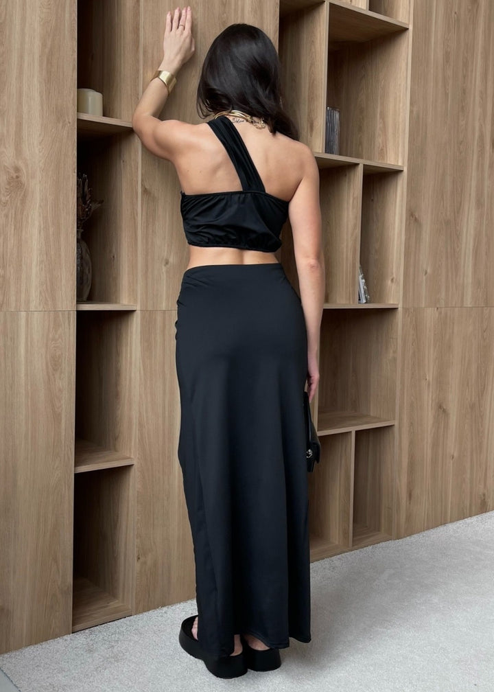 Elevate your style with our Twisted Crop Top & High Slit Skirt set, designed for those who love to make a statement. This chic two-piece outfit features a unique twisted crop top that highlights your silhouette, paired with a high slit skirt that adds an element of drama and allure. Perfect for date nights, parties, or any special occasion, this set is all about confidence and elegance.