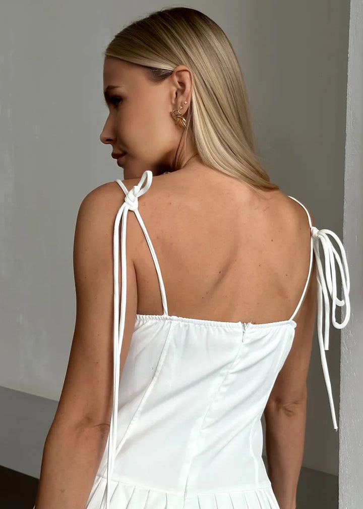 Introducing the Adjustable Straps Pleated Skirt Dress with Hook and Eye Closure, a delightful combination of style and comfort. This dress features a structured bodice with adjustable straps that can be tailored to your preferred fit, ensuring both versatility and ease of wear. The pleated skirt adds a playful touch, creating movement and flair with every step.