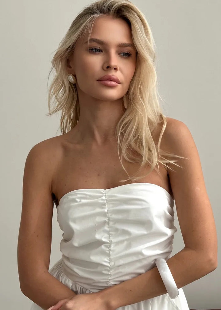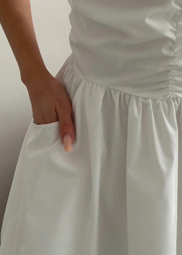 Introducing the Strapless Gathered Waist Dress with Pockets, a perfect blend of elegance and practicality. This stunning dress features a strapless design that highlights the shoulders and neckline, making it ideal for warm weather or special occasions. The gathered waist not only adds structure but also creates a flattering silhouette that accentuates the waistline.