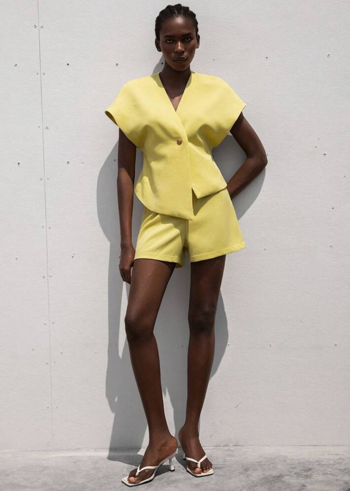 Polished Chic: Pair with tailored shorts or wide-leg trousers and heeled mules for an elevated daytime or evening look.