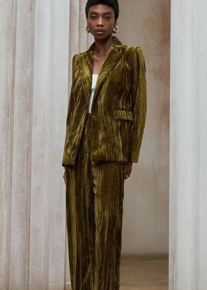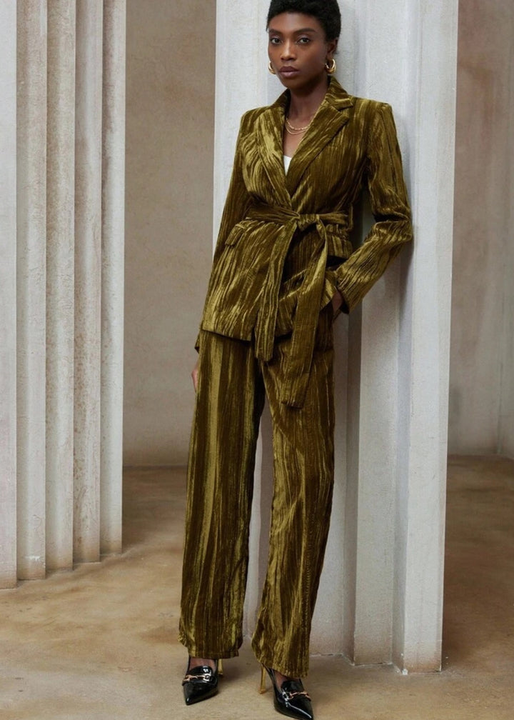 Expertly designed with velvet fabric, these trousers exude luxury and style. Perfect for any occasion, the unique pleated design adds dimension and texture to your outfit. Elevate your wardrobe with these fashionable and comfortable trousers.