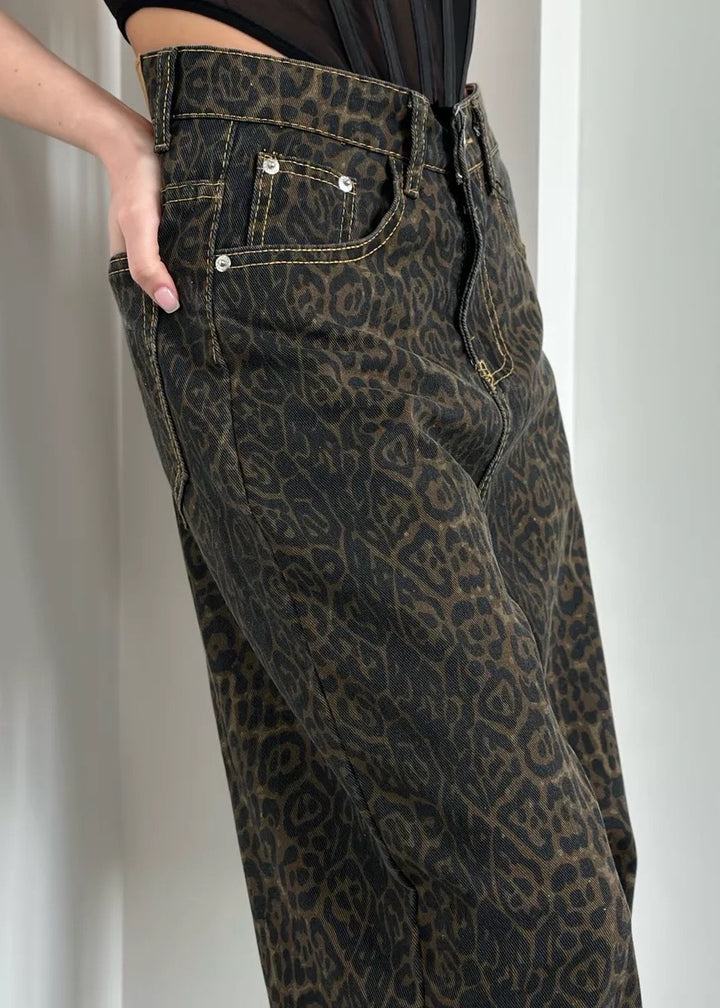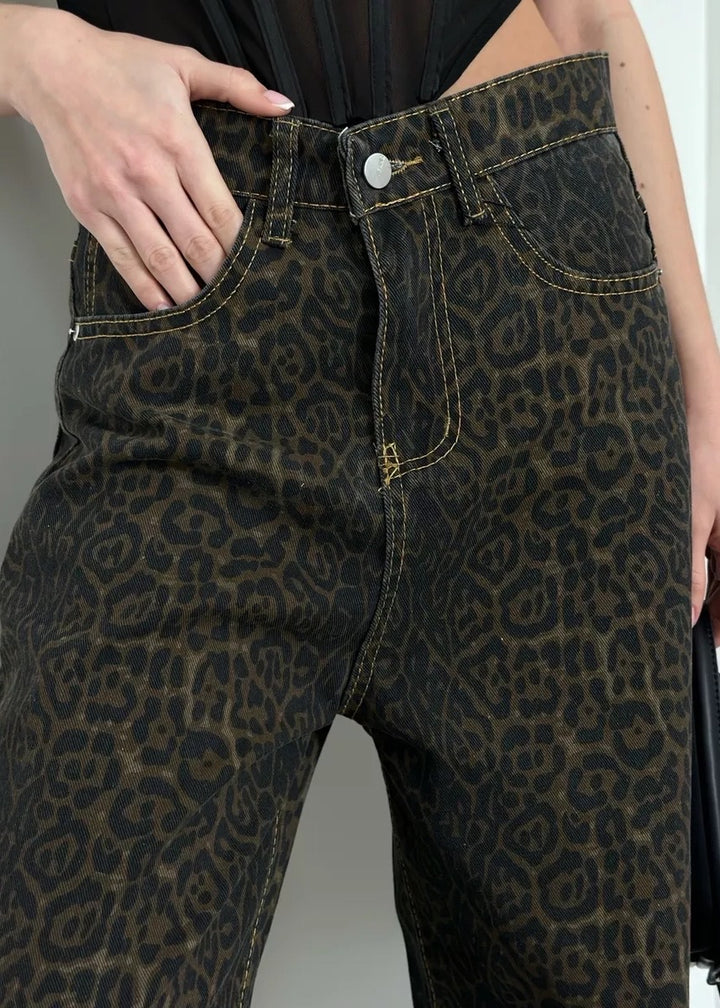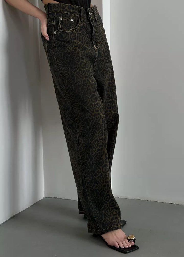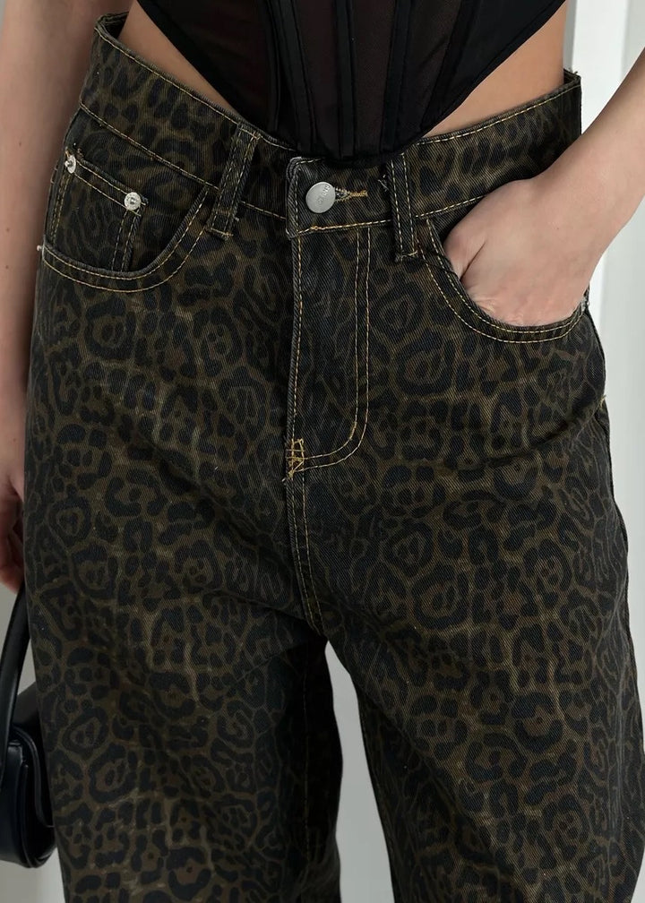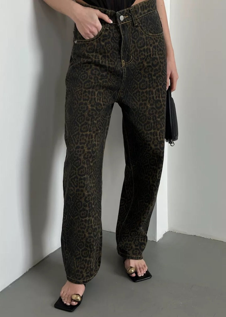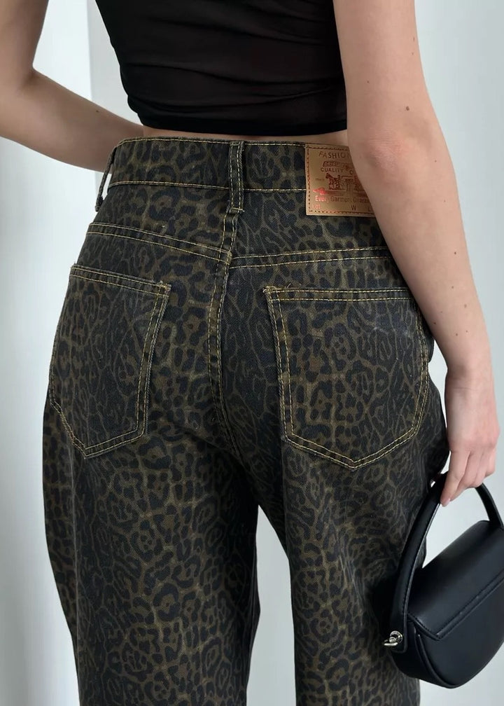 Leopard Print Classic High-Waisted Denim Pants