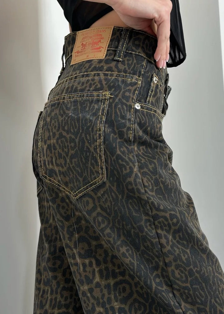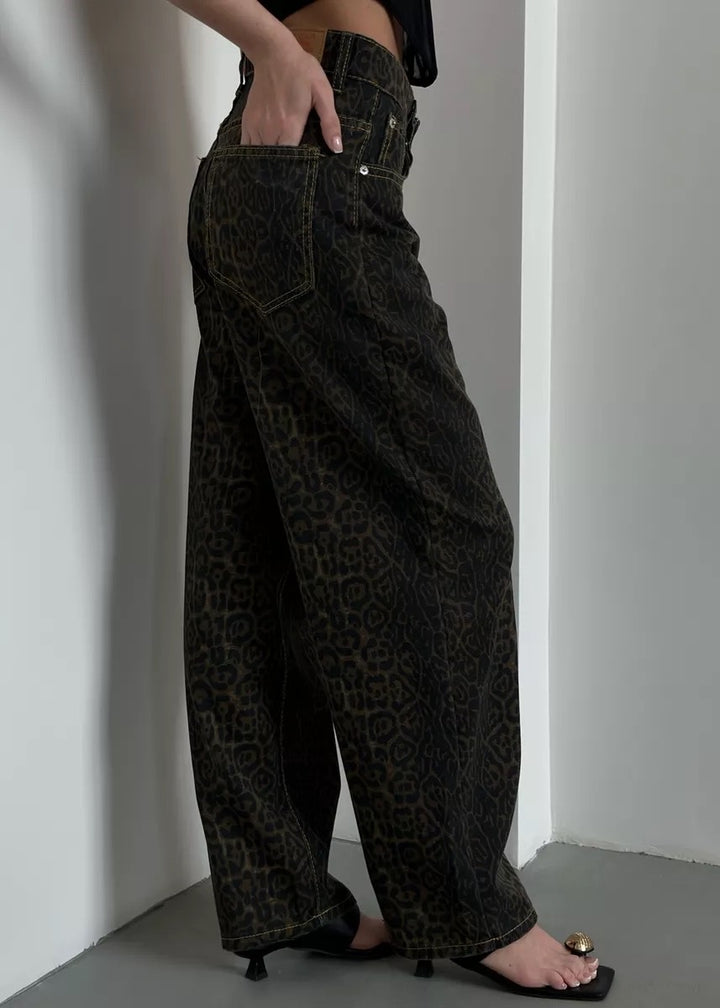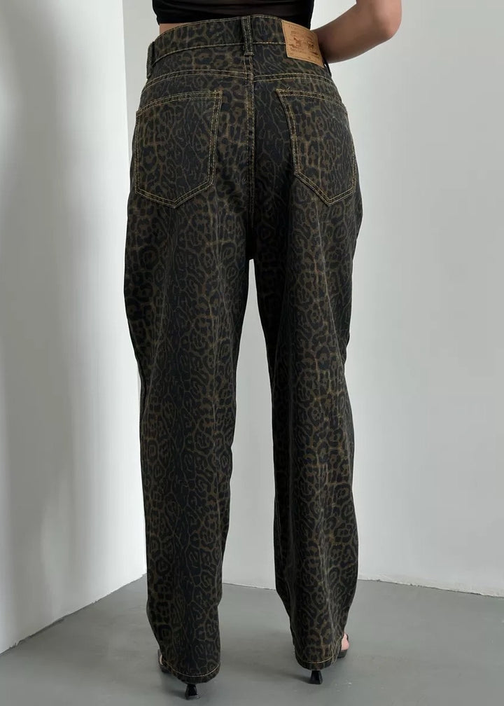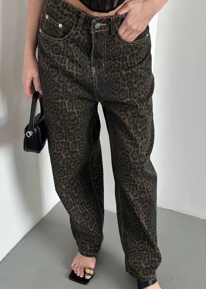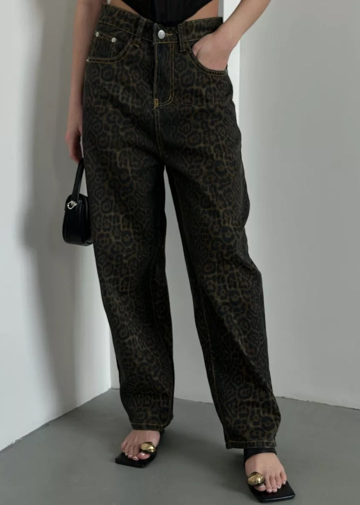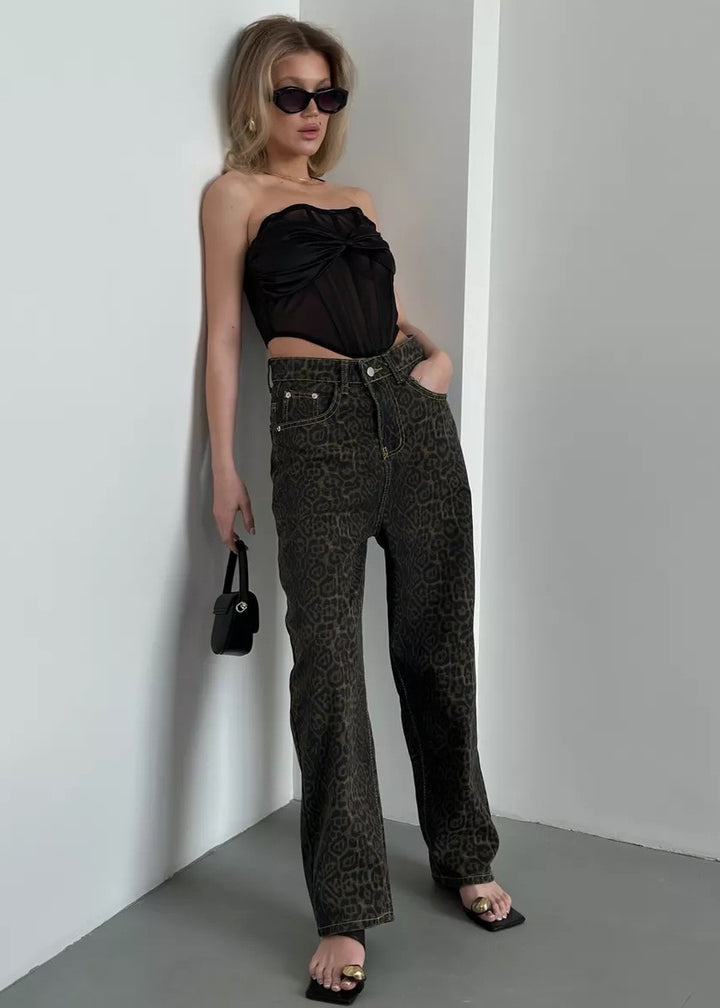 Leopard Print Classic High-Waisted Denim Pants