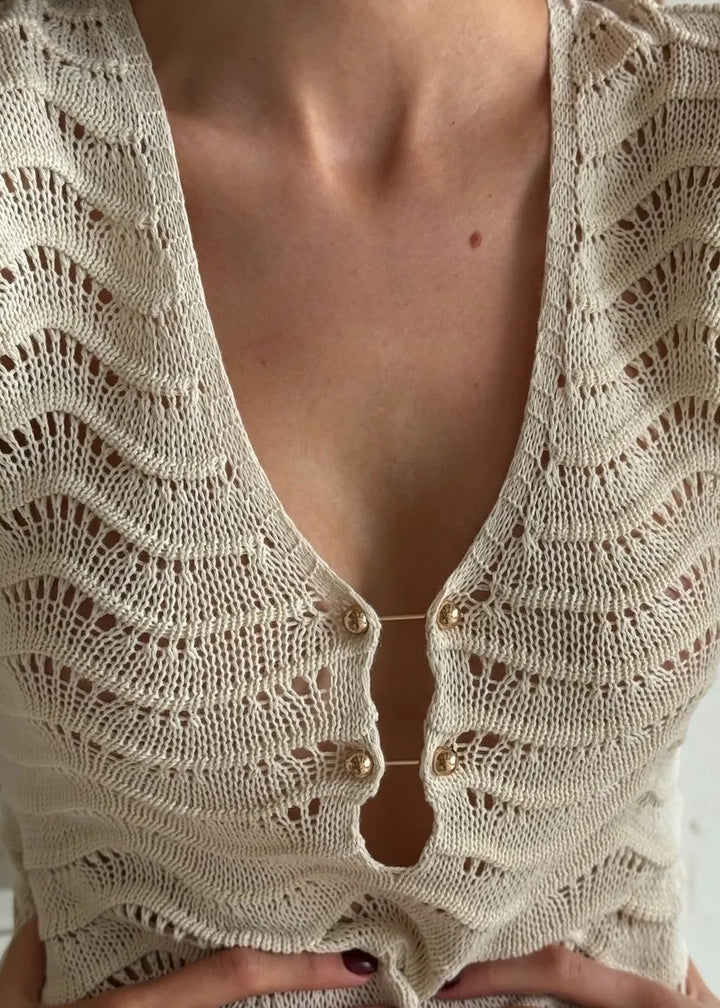 - Material: Made from a soft and breathable crochet fabric, ideal for warm weather.