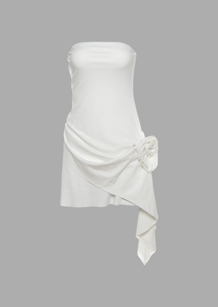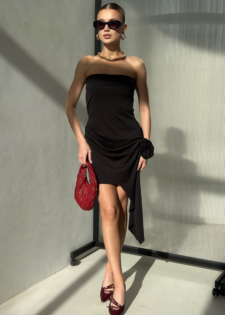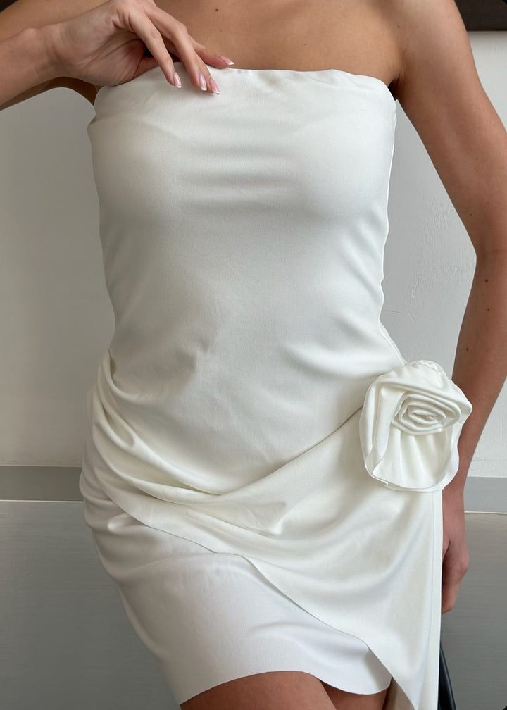 Introducing the Strapless Dress with Side Flower Detail, a stunning choice for both casual outings and special events.