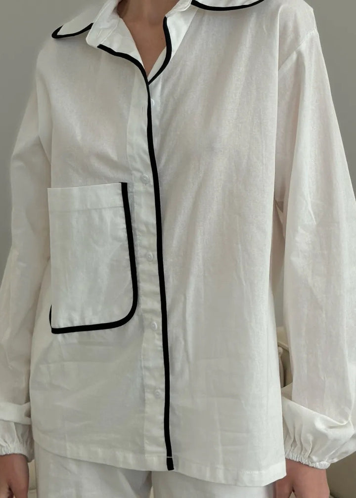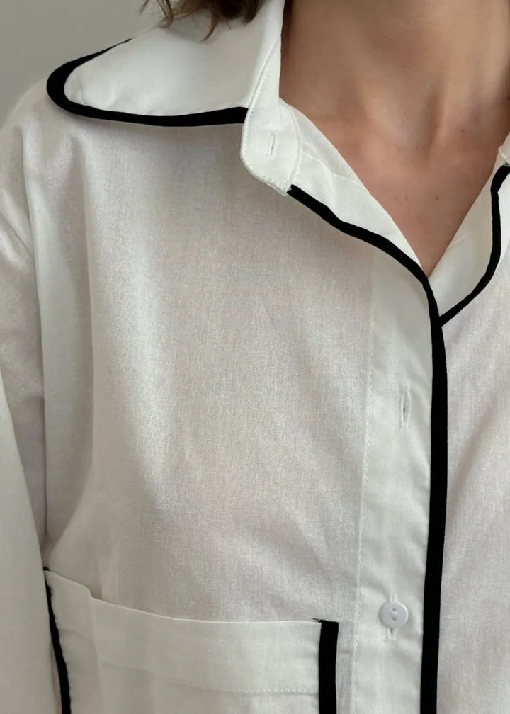 - Contrast Trim: Stylish contrast piping along the collar and pocket for added flair
