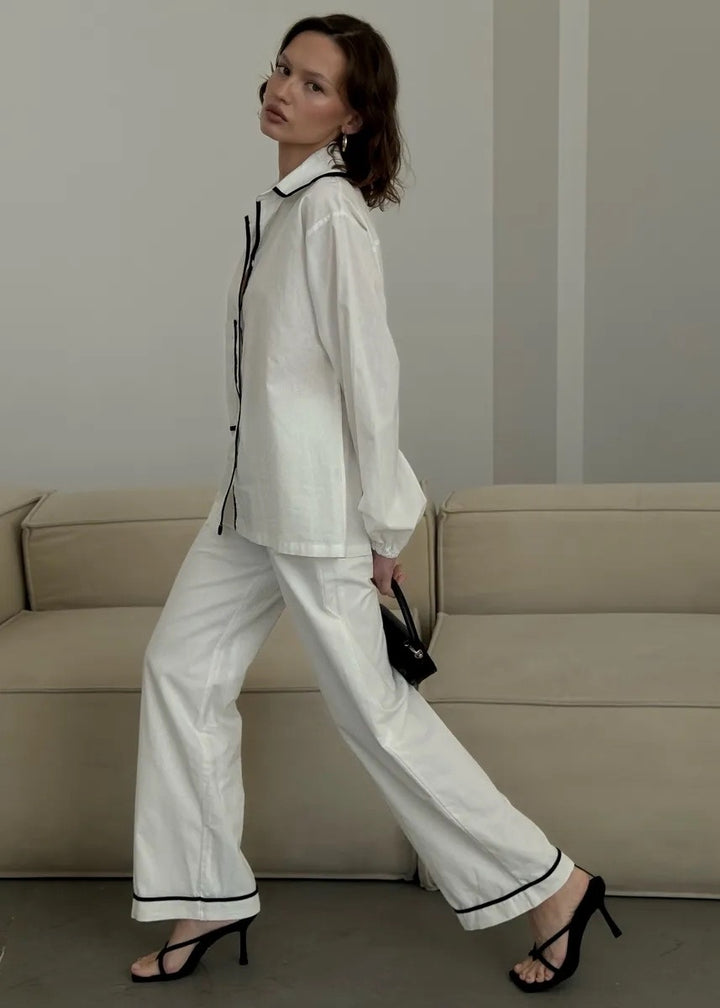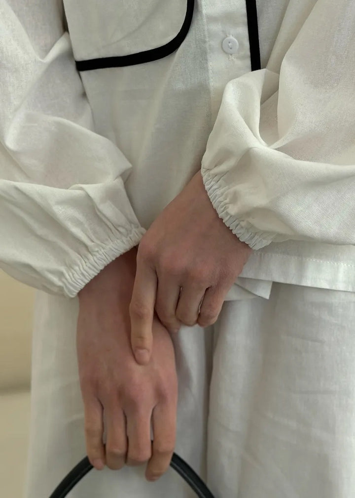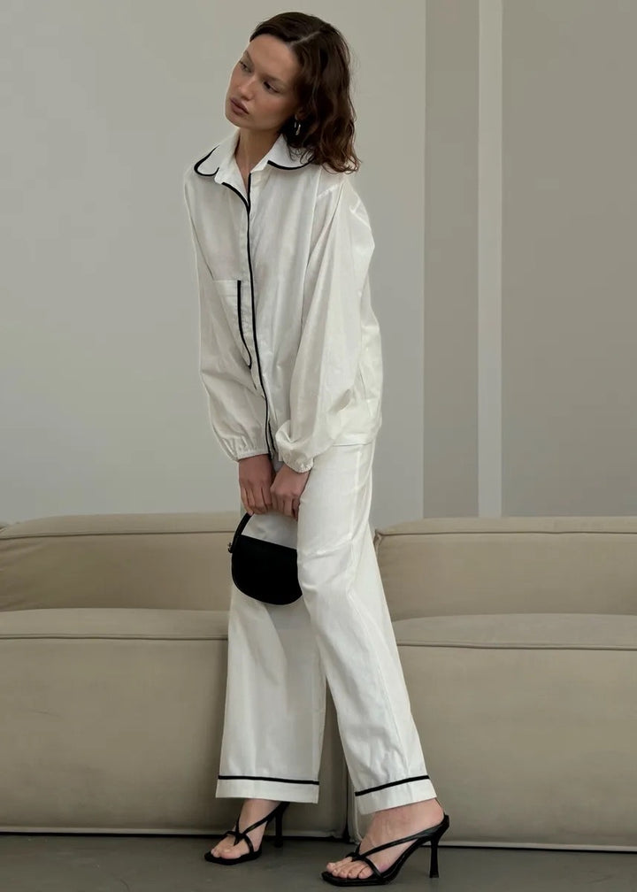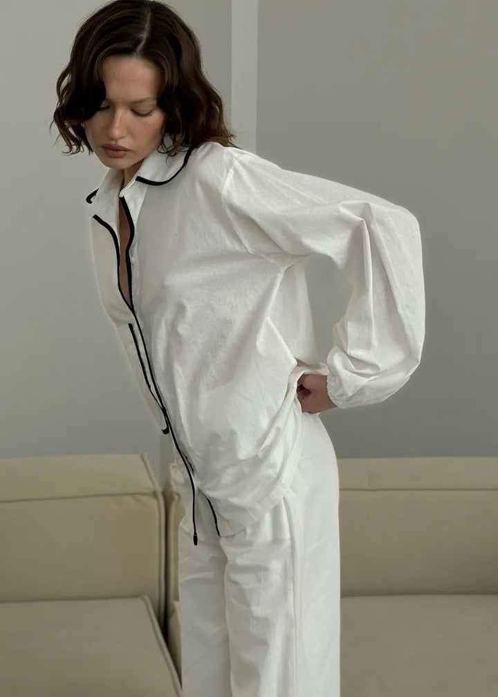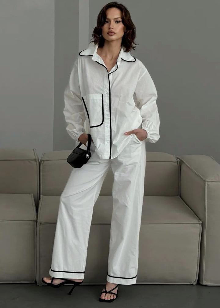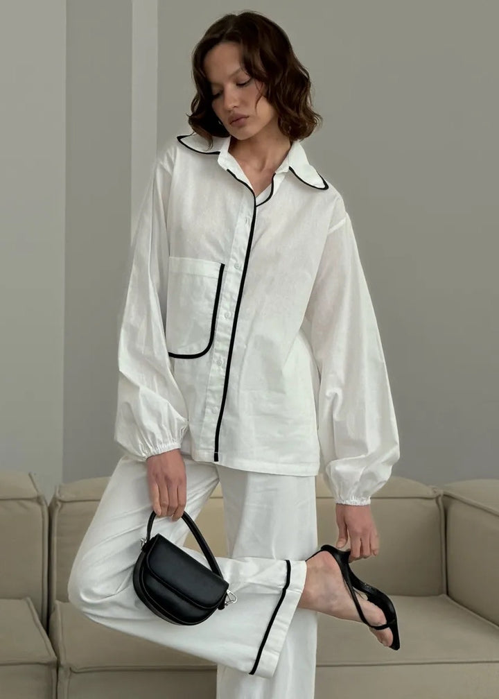 Linen Two-Piece Set with Pockets and Contrast Trim